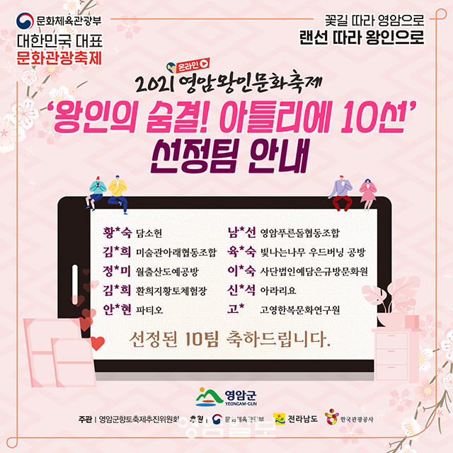 Áö³ 10ÀϺÎÅÍ 18ÀϱîÁö ¿µ¾Ï±º ÇâÅäÃàÁ¦ÃßÁøÀ§¿øÈ¸(±èÇѳ² À§¿øÀå)´Â ¡®¿ÕÀÎÀÇ ¼û°á! ¿µ¾Ï ¾ÆÆ²¸®¿¡ 10¼±¡¯¿¡ Âü¿©ÇÒ °ø¿¹ÀÛ°¡¸¦ ¸ðÁýÇϱâ À§ÇØ ±º ȨÆäÀÌÁö µîÀ» ÅëÇØ »çÀü °ø¸ð¸¦ ÃßÁøÇß°í, ´ã¼ÒÇå µî 10¸íÀÇ ÀÛ°¡°¡ °ø¸ð ½ÅûÇÔ¿¡ µû¶ó ½ÅûÀÚ ¸ðµÎ¸¦ ¼±Á¤ÇÏ°í ±º ȨÆäÀÌÁö¿¡ °ø°³Çß´Ù.