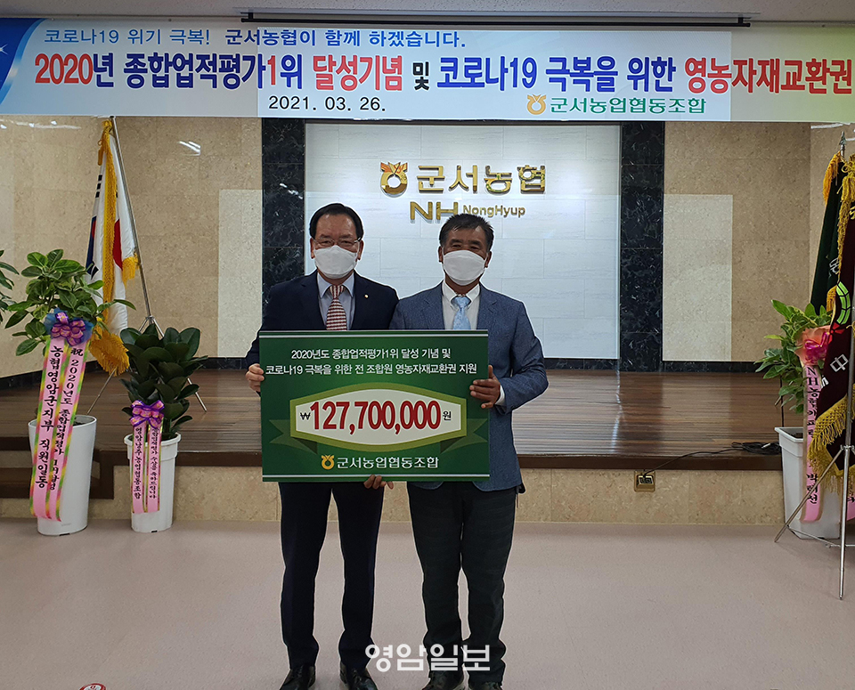 Áö³ 2¿ù¿¡ Á¶ÇÕ¿øµé¿¡°Ô 6600¸¸¿øÀÇ ¿µ³óÀÚÀç ¹«»ó±³È¯±ÇÀ» Áö±ÞÇß´ø ±º¼³óÇùÀº À̹ø¿¡ Ãß°¡·Î 2020³â Á¾ÇÕ¾÷ÀûÆò°¡ 1À§ ´Þ¼ºÀ» ±â³äÇϰí Äڷγª19 ±Øº¹À» À§ÇÑ ¿µ³óÀÚÀ繫»ó±³È¯±ÇÀ» Áö±ÞÇÔÀ¸·Î½á ¿ÃÇØ ÃÑ 1¾ï 9370¸¸¿øÀÇ ¿µ³óÀÚÀç ¹«»ó±³È¯±ÇÀ» Áö±ÞÇß´Ù.