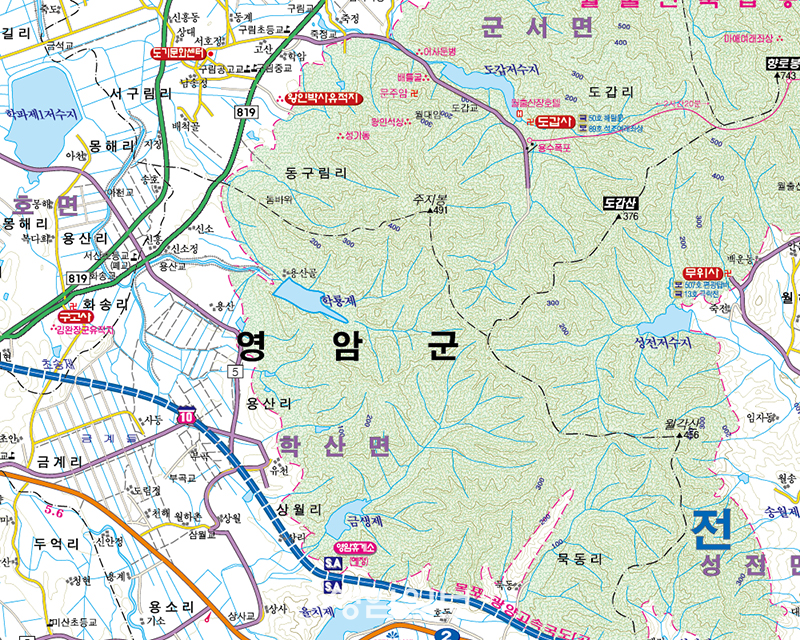 ±ºÀº Áö¸®ÀûÀ¸·Î È£³²Á¤¸Æ¿¡¼ ºÐ±âµÇ´Â ¶¥³¡±â¸ÆÀÎ ¿ùÃâ»ê õȲºÀÀ» Á¤Á¡À¸·Î µ¿³²ÂÊÀ¸·Î ±â¸ÆÀ» Çü¼ºÇϰí Àִµ¥ À̹ø¿¡ Á¶»çÇÏ°Ô µÉ ±¹°¡±âÁØÁ¡ Ç¥Áö´Â ±ÝÁ¤¸é ÃдëºÀ(394M)À» ½ÃÀÛÀ¸·Î ¼®±³»ê(392M), ±¹»çºÀ(614M), Ȱ¼º»ê(498M), ¿µ¾ÏÀ¾ ±ê´ëºÀ(517M), ±º¼¸é õȲºÀ(810M), ÁÖÁöºÀ(492M), Çлê¸é ÀºÀû»ê(394M), ¹Ì¾Ï¸é Èæ¼®»ê(652M) µî¿¡ À̸£±â±îÁö »ê¾ÇÁö´ë¿¡ °ñ°í·ç ¼³Ä¡µÇ¾î Ãø·®¿¡ »ç¿ëµÉ ¼ö ÀÖµµ·Ï °ü¸®Çϰí ÀÖ´Ù.