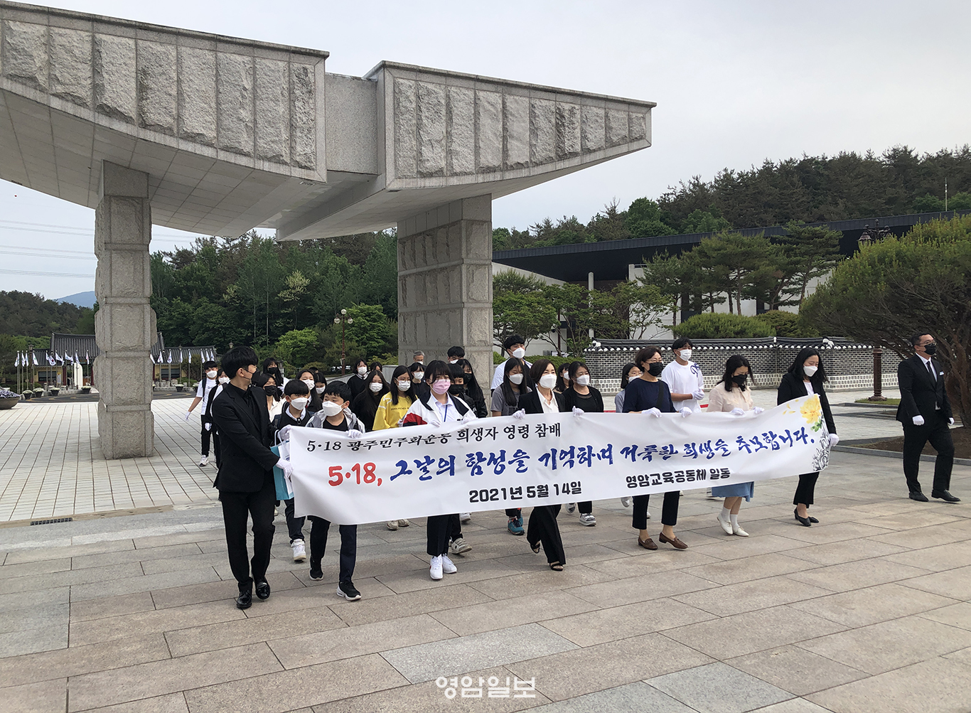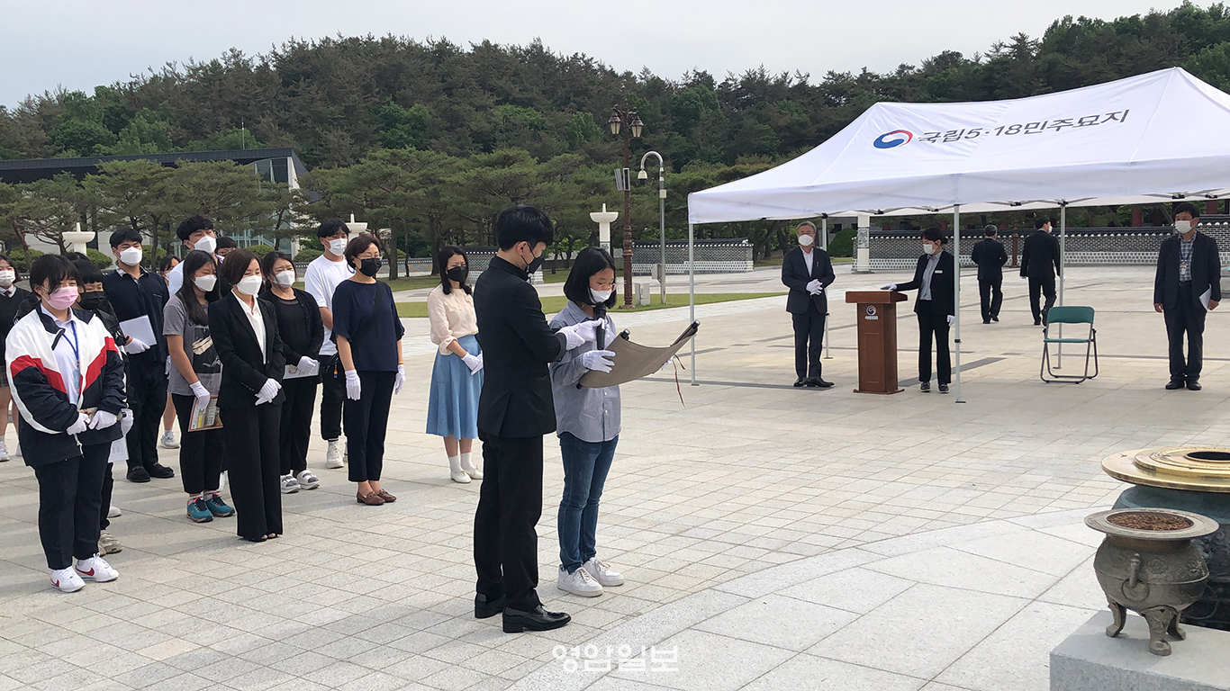 ¿ùÃâÇлýÀÚÄ¡¿¬ÇÕȸ Çлý 28¸í°ú ¿ùÃâÇкθðȸÀå, ¿µ¾Ï±³À°Âü¿©À§¿øÀå µîÀ» Æ÷ÇÔÇÑ ¿µ¾Ï±³À°°øµ¿Ã¼ Àϵ¿Àº Äڷγª19 ¿¹¹æ ¹× ±³Åë¾ÈÀü ¼öÄ¢À» ÁؼöÇÏ¸é¼ ±¹¸³5¡¤18¹ÎÁÖ¹¦Áö¿¡¼ Âü¹è¸¦ ÇÏ°í ¹ÎÁ·¹ÎÁÖ¿»çÀÇ ¹¦¿ª¿¡ °³Àκ°·Î Çåȸ¦ Çϸç Èñ»ýÁ¤½ÅÀ» ¹Þµé¾î ÆòÈÀÇ ¼ÒÁßÇÔÀ» µÇ»õ°å´Ù.