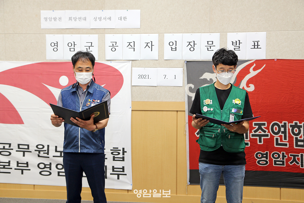 °ø¹«¿ø³ëÁ¶ ¿µ¾Ï±º ÁöºÎ¿Í ¹ÎÁÖ¿¬ÇÕ³ëÁ¶ ¿µ¾Ï±º ÁöºÎ´Â ÅðÁ÷°ø¹«¿øÀ¸·Î ±¸¼ºµÈ ¿µ¾Ï¹ßÀüÈñ¸Á¿¬´ë°¡ Áö³ 6¿ù 30ÀÏ ¹ßÇ¥ÇÑ ¼º¸í¼¿¡ ´ëÇØ °ÝÇÑ ¡®¿ì·Á¡¯¿Í ¡®Åëź¡¯À» Ç¥ÇÑ´Ù¸é¼ °øµ¿ÀÔÀå¹®À» ¹ßÇ¥ÇÏ°í ³ª¼¹´Ù.