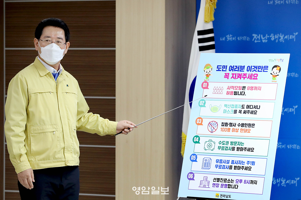 Àü³²µµ´Â »çȸÀû °Å¸®µÎ±â °³Æí¾È Àû¿ëÀ¸·Î »çÀû¸ðÀÓ Àοø Á¦ÇÑÀ» ÇØÁ¦ÇØ¾ß ÇÏÁö¸¸ ±×µ¿¾È À¯ÁöÇß´ø »çÀû¸ðÀÓ Çã¿ë Àοø 8ÀÎÀ» ¿À´Â 31ÀϱîÁö À¯ÁöÇϱâ·Î Çß´Ù. ¶Ç ½Ç³»¿Ü ¸ðµç Àå¼Ò¿¡¼ ¹é½ÅÁ¢Á¾ ¿©ºÎ¿Í °ü°è¾øÀÌ ¸¶½ºÅ©¸¦ Âø¿ëÇϵµ·Ï ÇàÁ¤¸í·ÉÀ» ³»·È´Ù.