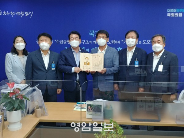 ÀÌ¿¡ ÃÖâȣ »ê¸²Á¶ÇÕÁß¾ÓȸÀåÀº À̺κÀ ¿µ¾Ï±º»ê¸²Á¶ÇÕÀå, ¹Úº´¼® ¹«¾È±º»ê¸²Á¶ÇÕÀå, ¹ÚÀÏ¿ë ½Å¾È±º»ê¸²Á¶ÇÕÀå°ú ÇÔ²² ¼»ï¼® ÀÇ¿øÀ» ¸¸³ª 80¸¸ Á¶ÇÕ¿øÀ» ´ëÇ¥ÇØ °¨»çÆÐ¸¦ Àü´ÞÇÏ¸é¼ ¡°»ê¸² ¹ßÀü¿¡ Áö¼ÓÀûÀ¸·Î °ü½ÉÀ» °®°í ÀÓ¾÷Á÷Á¢ÁöºÒÁ¦ µµÀÔÀ» À§ÇÑ ¹ý¾Èµµ ¹ßÀÇÇØ ÁֽŠ°Í¿¡ °¨»çµå¸®¸ç, ÇØ´ç ¹ý¾ÈÀÌ ±¹È¸ ½ÉÀǸ¦ Åë°úÇÒ ¼ö ÀÖµµ·Ï ¸¶Áö¸·±îÁö ÈûÀ» ¸ð¾ÆÁÖ±æ ºÎŹµå¸°´Ù¡±°í ¸»Çß´Ù.
