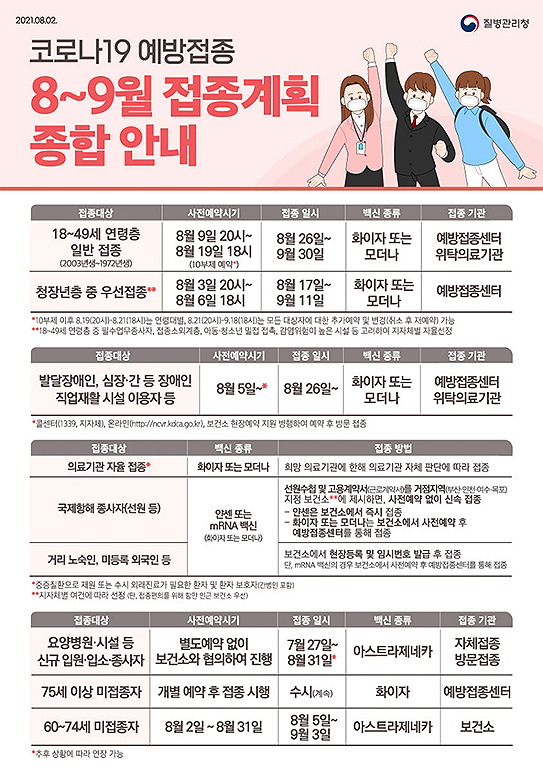 ƯÈ÷ ¸¸ 18~49¼¼ ÀÚÀ²Á¢Á¾ÀÚ´Â ÁöÀÚü°¡ ¿ì¼± Á¢Á¾ÀÌ ÇÊ¿äÇÏ´Ù°í ÆÇ´ÜÇÑ ´ë»óÀÌ´Ù. ÁÖ¿ä ´ë»óÀº ¡ã´ëÁß±³Åë ±Ù¹«ÀÚ, Åùè±Ù·ÎÀÚ, ȯ°æ¹ÌÈ¿ø µî Çʼö¾÷¹« Á¾»çÀÚ ¡ãÀå¾ÖÀÎ, ¿Ü±¹ÀαٷÎÀÚ, ¿Ü±¹ÀÎÀ¯Çлý µî Á¢Á¾ ¼Ò¿Ü°èÃþ ¡ãÇпø¡¤Ã»¼Ò³â °ü·Ã Á¾»çÀÚ, ½Ç³»Ã¼À°½Ã¼³ Á¾»çÀÚ µî ¾Æµ¿¡¤Ã»¼Ò³â ¹ÐÁ¢ Á¢ÃËÀÚ ¡ãÀϹݡ¤ÈÞ°ÔÀ½½ÄÁ¡, ³ë·¡¿¬½ÀÀå, PC¹æ Á¾»çÀÚ µî °¨¿° À§ÇèÀÌ ³ôÀº ½Ã¼³ Á¾»çÀÚ µîÀÌ´Ù.