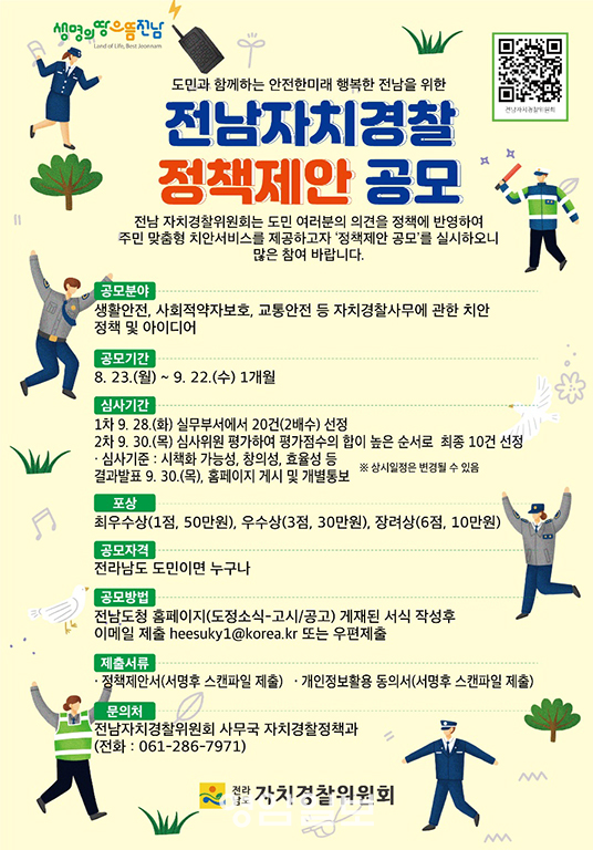 Á¶¸¸Çü Àü³²µµ ÀÚÄ¡°æÂûÀ§¿øÀåÀº ¡°Á¤Ã¥ Á¦¾È °ø¸ð°¡ µµ¹ÎÀÇ Ä¡¾È Á¤Ã¥ Âü¿©ÀÇ ¸¶Áß¹°ÀÌ µÉ °ÍÀ¸·Î ±â´ëÇÑ´Ù¡±¸ç ¡°¾ÕÀ¸·Îµµ ¾ÈÀüÇÑ Àü³²À» À§ÇÑ Ä¡¾È Á¤Ã¥¿¡ µµ¹ÎÀÇ ¸ñ¼Ò¸®¸¦ Àû±ØÀûÀ¸·Î ¹Ý¿µÇϰڴ١±°í ¸»Çß´Ù.
