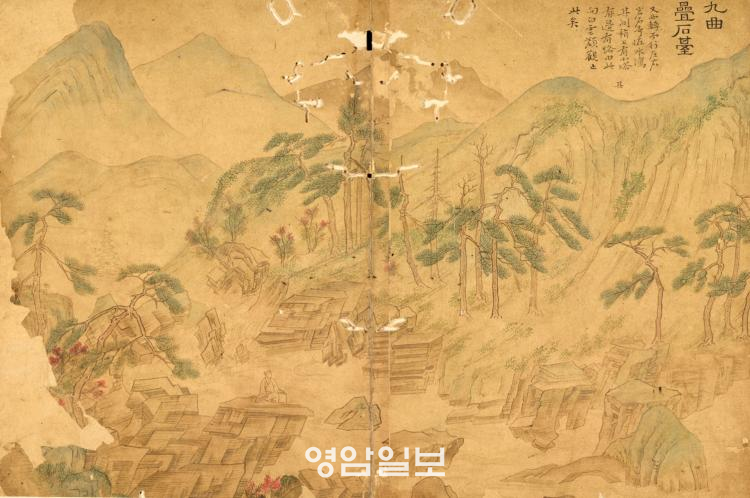 ÀÌÁ¦ ¶Ç ¾îµð°¡ ³²¾ÒÀ»±î. ½Ã°£µµ °ø°£µµ ¾ø´Â Àú ±×¸² ¼ÓÀ¸·Î´Â Ȥ µé¾î°¥ ¼ö ÀÖÀ»±î. ¿©±â ±×·± ÀÏÀ» Èñ±¸ÇÑ »ç¶÷ÀÌ ÀÖ´Ù. °î¿î(ÍÛê£) ±è¼öÁõ(ÑÑáøñò, 1624~1701)ÀÌ´Ù. ±è¼öÁõÀº Á¤°è¿¡ ¹°·¯³ª ÀÖ´ø 1670³â ¹«·Æ ÀÚ½ÅÀÇ ±¸°îÀ» °æ¿µÇÏ¿´´Ù. Èõ È¾Ç»ê ¾Æ·¡ °î¿î°è°îÀÌ ±×°÷ÀÌ´Ù. ±×¸®°í ½Ê¿© ³âÀÌ Áö³ 1682³â ¹«·Æ Æò¾çÀÇ È°¡ Á¶¼¼°É(ðÆá¦Ëø)À» ºÒ·¯ ÀÌ ±¸°îÀÇ ½Ç°æÀ» ±×¸²¿¡ ´ã¾Æ µµÃ¸À» ¸¸µé¾ú´Ù. À§ÀÇ ¹ß¹®Àº Á¶Ä« ±èâÇùÀÌ ÀÌ µµÃ¸¿¡ ºÙÀÎ ±ÛÀÌ´Ù.