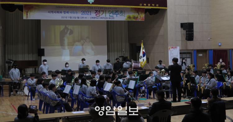 ½ÅºÏÁßÇб³ À̱â½Ä ±³ÀåÀº¡°À̹ø ½ÅºÏ¹ÂÁîÀ©µå¿ÀÄɽºÆ®¶ó Á¤±â¿¬ÁÖȸ°¡ ½ÅºÏÁß ÇлýµéÀÌ À½¾ÇÀÇ Àç´É°ú ¿ª·®À» ÆîÄ¥ ¼ö ÀÖ´Â ÀåÀ» ¸¶·ÃÇØ¼ ±â»Ú°í Çкθ𲲼 ÀÚ³àµéÀÇ ¿¬ÁÖ¸¦ µéÀ¸½Ã°í ¶ß°Å¿î ÀÀ¿ø°ú Èå¹µÇØÇϴ ǥÁ¤À» º¸´Ï Çб³ÀåÀ¸·Î¼ ´ë´ÜÈ÷ ±â»Ú´Ù.¡±¸é¼ ¡°¾ÕÀ¸·Î ½ÅºÏ¹ÂÁîÀ©µå¿ÀÄɽºÆ®¶ó¿¡ ´ëÇÑ È°µ¿ Áö¿ø°ú Çб³±³À°°úÁ¤ Æí¼º µîÀ» ÅëÇØ ÇлýµéÀÇ Àç´É°ú ¿ª·®À» ½ÅÀåÇÏ°í ´õºÒ¾î Áö¿ª»çȸ¿Í ÇÔ²² ³ª´ ¼ö ÀÖµµ·Ï ³ë·ÂÇϰڴ١±°í ¹àÇû´Ù.