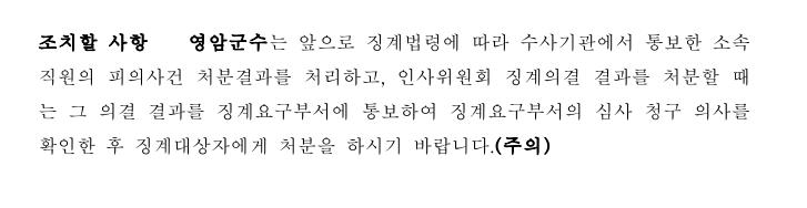¡¯Áö¹æ°ø¹«¿ø ¡°è±ÔÄ¢¡®¿¡ µû¸£¸é, ¿µ¾Ï±ºÀº ¼ö»ç±â°üÀ¸·ÎºÎÅÍ °ø¹«¿ø¿¡ ´ëÇÑ <¡ã°ø¼ÒÁ¦±â ¡ã±â¼ÒÀ¯¿¹ ¡ã±× ¹ÛÀÇ Ã³ºÐ ¶Ç´Â °áÁ¤> µîÀÇ ¹üÁË»ç°ÇÀ» Å뺸 ¹ÞÀ» °æ¿ì¿¡´Â ÀλçÀ§¿øÈ¸¿¡ ¡°èÀǰáÀ» ¿ä±¸ÇÏ¿©¾ß ÇÑ´Ù.