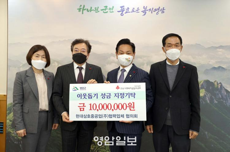 Çö´ë»ïÈ£Áß°ø¾÷(ÁÖ)Çù·Â¾÷ü ÇùÀÇȸ´Â ¸Å³â Á¤±âÀûÀ¸·Î ¿µ¾Ï±ºÀÇ ºÒ¿ì ÀÌ¿ôÀ» À§ÇØ ¼º±ÝÀ» ±âºÎÇϰí ÀÖÀ¸¸ç, ¼º±ÝÀº Àü³²»çȸº¹Áö°øµ¿¸ð±Ýȸ¸¦ ÅëÇØ ÁöÁ¤ ±âŹÇÏ¿© Áö¿ª ³» µµ¿òÀÌ ÇÊ¿äÇÑ Ãë¾à°èÃþÀ¸·Î Áö¿øÇÒ ¿¹Á¤ÀÌ´Ù.