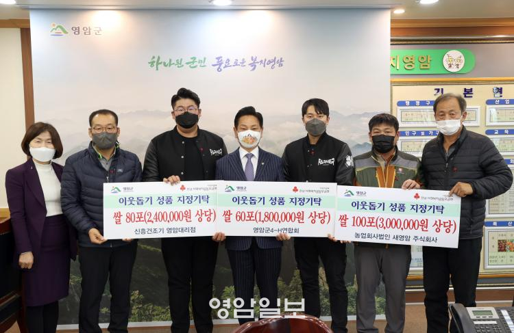 ±âºÎ³»¿ªÀº ³ó¾÷ȸ»ç¹ýÀÎ »õ¿µ¾Ï ÁÖ½Äȸ»ç(°±¤Ãµ ´ëÇ¥)¿¡¼ ½Ò 100Æ÷¸¦ ±âŹÇÏ¿´À¸¸ç, ½ÅÈï°ÇÁ¶±â ¿µ¾Ï´ë¸®Á¡(¾ç¸íÁ÷ ´ëÇ¥)¿¡¼ ½Ò 80Æ÷¸¦, ¿µ¾Ï±º4H-¿¬ÇÕȸ(¹ÚŽ ȸÀå)¿¡¼´Â ½Ò 60Æ÷¸¦ Àú¼Òµæ °¡Á¤À» À§ÇØ ±âŹÇÏ¿´´Ù.