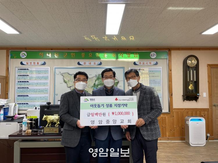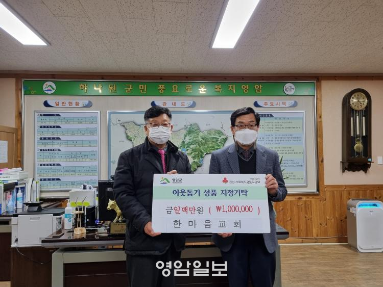 ¿µ¾Ï±º ¿µ¾ÏÀ¾¿¡ À§Ä¡ÇÑ ¿µ¾ÏÁß¾Ó±³È¸(¸ñ»ç À±ÁØÈ¯)¿Í ÇѸ¶À½±³È¸(¸ñ»ç °Ãá¼®)¿¡¼´Â Áö³ 12¿ù 28ÀÏ ÀÌ¿ôµ½±â ¼º±Ý °¢ 100¸¸¿ø¾¿À» ¿µ¾ÏÀ¾¿¡ ±âŹÇß´Ù.
