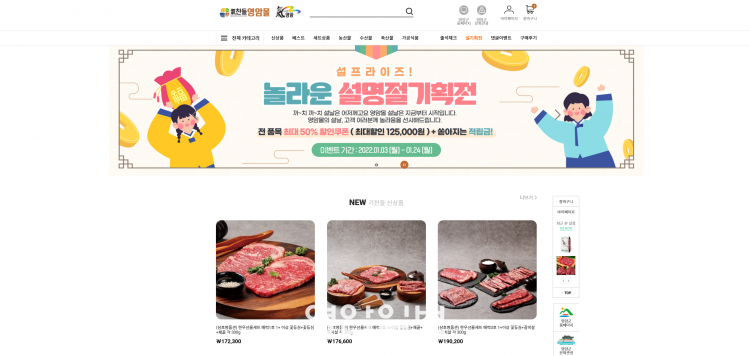À̹ø ±âȹÀüÀº ¿À´Â 1¿ù 24ÀϱîÁö ÁøÇàÇÏ¸ç ¹ÎÁ·´ë¸íÀýÀÎ ¼³À» ¸Â¾Æ °¨»çÀÇ ¸¶À½À» ³ª´ ¼ö ÀÖ´Â ¿µ¾Ï¸Å·ÂÇÑ¿ì, °í±¸¸¶, À¯±â³ó ½Ò µî ¿µ¾Ï±º ´ëÇ¥ ³óƯ»ê¹°·Î ±¸¼ºµÇ¾î ÀÖ´Ù.