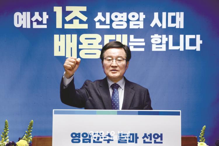 ¹è¿ëÅ ¿¹ºñÈ帴 ¡°¿ì¸®ÀÇ ¾Æµé°ú µþµéÀÌ ´õ Å« ²Þ°ú Èñ¸ÁÀ» ãÀ» ¼ö ÀÖµµ·Ï ¿µ¾ÏÀÇ ¹àÀº ¹Ì·¡¸¦ ¿°Ú´Ù¡±°í ¹àÈ÷¸ç, ¡°¿¹»ê 1Á¶¿ø ½Å¿µ¾Ï ¹è¿ëŰ¡ ÇÕ´Ï´Ù¡±´Â ijġÇÁ·¹ÀÌÁ ³»¼¼¿ì°í º»°ÝÀûÀÎ °æ¼± ¼±°ÅȰµ¿À» ½ÃÀÛÇÑ´Ù°í Æ÷¹®À» ¿¾ú´Ù. ±×´Â 30¿©³â°£ °øÁ÷Àڷμ Áß¾Ó°ú Áö¹æÇàÁ¤À» µÎ·ç °ÅÄ£ ÁغñµÈ ÇàÁ¤Àü¹®°¡ÀÓÀ» °Á¡À¸·Î ³»¼¼¿ì¸ç, ¡°È¥½ÅÀÇ ÈûÀ» ´ÙÇØ ¿µ¾Ï ¹ßÀüÀ» °¡·Î¸·´Â Àå¾Ö¿äÀεéÀ» ±ú²ýÀÌ Ã»¼ÒÇϰí, ±º¹ÎÀÇ ´É·Â°ú ¿ª·®À» ÃÖ´ëÄ¡·Î ¸ð¾Æ ¿µ¾ÏÀ» Àü³² ÃÖ°íÀÇ ±ºÀ¸·Î µµ¾à½ÃÄÑ, ¿µ¾ÏÀ» ¡®ÇູÀÇ ¶¥, ¹ßÀüÀÇ ¶¥¡¯À¸·Î ¸¸µé°Ú´Ù¡¯°í ¹àÇû´Ù.
