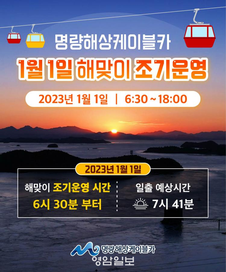 ¿À´Â 1¿ù 1ÀÏ ¿ÀÀü 6½Ã 30ºÐºÎÅÍ ¸í·®ÇØ»óÄÉÀ̺íÄ«¿¡¼´Â ÇØ¸ÂÀÌ Á¶±â ¿î¿µÀ» ÇÑ´Ù°í ¹àÇû´Ù.