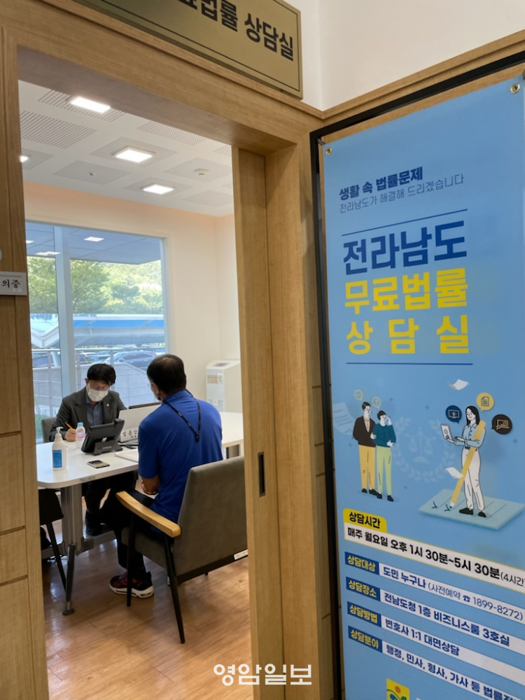 »ó´ãÀº ´ëÇ¥ÀüÈ(1899-8272)³ª, ÀÎÅͳÝ(Àü¶ó³²µµ ¹ý¹«ÇàÁ¤¼ºñ½º ´©¸®Áý(http://law.jeonnam.go.kr))À» ÅëÇØ ¹ÞÀ» ¼ö ÀÖ°í, ´ë¸é»ó´ãÀº Àü³²µµÃ» 1Ãþ ¹ý·ü»ó´ã½Ç¿¡¼ ¸ÅÁÖ ¿ù¿äÀÏ ¿ÀÈÄ 1½Ã 30ºÐºÎÅÍ 5½Ã 30ºÐ±îÁö 4½Ã°£ µ¿¾È ÀÌ¿ëÇÒ ¼ö ÀÖ´Ù. »ó´ãÀ» ¹Ù¶ó´Â µµ¹ÎÀº ´ëÇ¥ÀüÈ·Î »çÀü ¿¹¾àÀ» ÇÏ¸é µÈ´Ù.