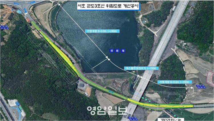 ¿µ¾Ï±ºÀº ±âÁ¸ µµ·ÎÀÇ ¼±Çü°ú ÁöÇüÀ» °í·ÁÇØ ¿¬Àå 600m ±¸°£¿¡ ±Þ°æ»ç, ±ÞÄ¿ºê¸¦ ÃÖ´ëÇÑ ¿ÏÈÇÏ´Â °³·®°ø»ç¸¦ ÃßÁøÇÒ °èȹÀÌ´Ù. °ø»ç¿¡´Â Ưº°±³ºÎ¼¼ 9¾ï ¿ø°ú ±ººñ 2¾ï ¿ø, ÃÑ 11¾ï ¿øÀÇ »ç¾÷ºñ°¡ ÅõÀԵȴÙ.