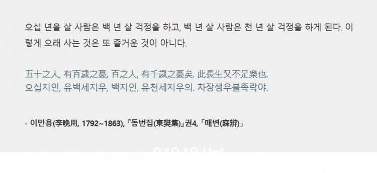 À̸¸¿ëÀº ÀÌ ±Û¿¡¼ »ó³äÀ¸·Î ÀÎÇÑ ²ÞÀ» ²ÙÁö ¾Ê±â À§Çؼ¶óµµ, ¸öÀÌ Æí¾ÈÇÏ°í ¸¶À½ÀÌ ´À±ßÇÑ °ÍÀÌ Áß¿äÇϰí, ¸¸°íÀÇ ¼ºÀΰú ¹é¼¼ÀÇ ¿µ¿õÀÌ ÇʺÎ(ù¯Üý)º¸´Ù ¸øÇÑ °ÍÀº ±Ù½É°ú Áñ°Å¿òÀÇ Â÷À̶ó°í ÇÏ¿´´Ù. ±×¸®°í ÀÚ½ÅÀÌ ÁÁ¾ÆÇÏ´Â °ÍÀ» Áñ±â¸ç »ç´Â °Í, ±×°ÍÀÌ ¼ö¸íÀ» ´Ã¸®´Â ¹æ¹ýÀÌ¶ó ¸»ÇÑ´Ù. ¾î¼¸é À̸¸¿ëÀÇ ¸»´ë·Î À̹é(×ÝÛÜ), ¿Õ¼ø(èÝâé) °°Àº ¹®ÀεéÀº ÀáÀ» ÀÚ´Â µ¿¾È ¹®ÀåÀÌ Áøº¸ÇßÀ»Áö ¸ð¸¥´Ù. ÀÌÁ¦ ¿ì¸®µµ Àá°ú ½Î¿ì´Â °ÍÀ» ¸ØÃß°í, Ç« ÀÚ°í º¼ ÀÏÀÌ´Ù.