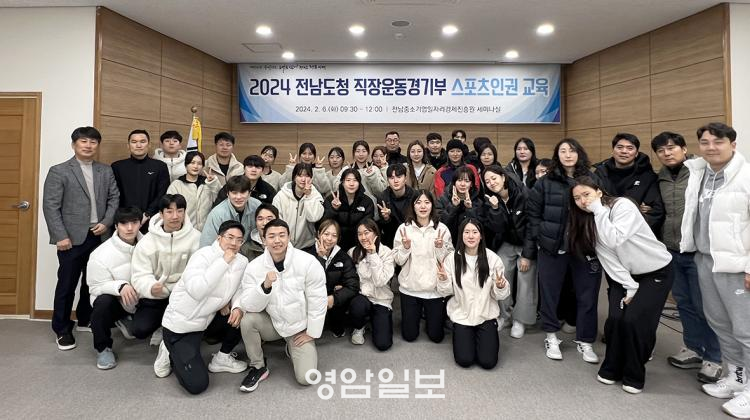 À̳¯ °»ç·Î ³ª¼± Â÷¿©Áø Àü³²Ã¼À°È¸ ½ºÆ÷Ã÷°úÇм¾ÅÍ ¼±ÀÓ¿¬±¸¿øÀº ¡®ÀϵîÀÌ ¾Æ´Ñ Àαǡ¯À̶ó´Â ÁÖÁ¦·Î ÀαÇÀÇ ±âº» °³³ä, ´Ù¾çÇÑ ÀαÇÄ§ÇØ »ç·Ê, ÀαÇÄ§ÇØ ¹æÁö ´ëÃ¥ µîÀ», ¹ÚÇÏÁ¤ Àü³²µµÃ» üÀ°Á¤Ã¥ÆÀÀåÀº Á÷Àå¿îµ¿°æ±âºÎÀÇ Åõ¸íÇÑ ÆÀ ¿î¿µ¿¡ ´ëÇØ °Á¶Çß´Ù.