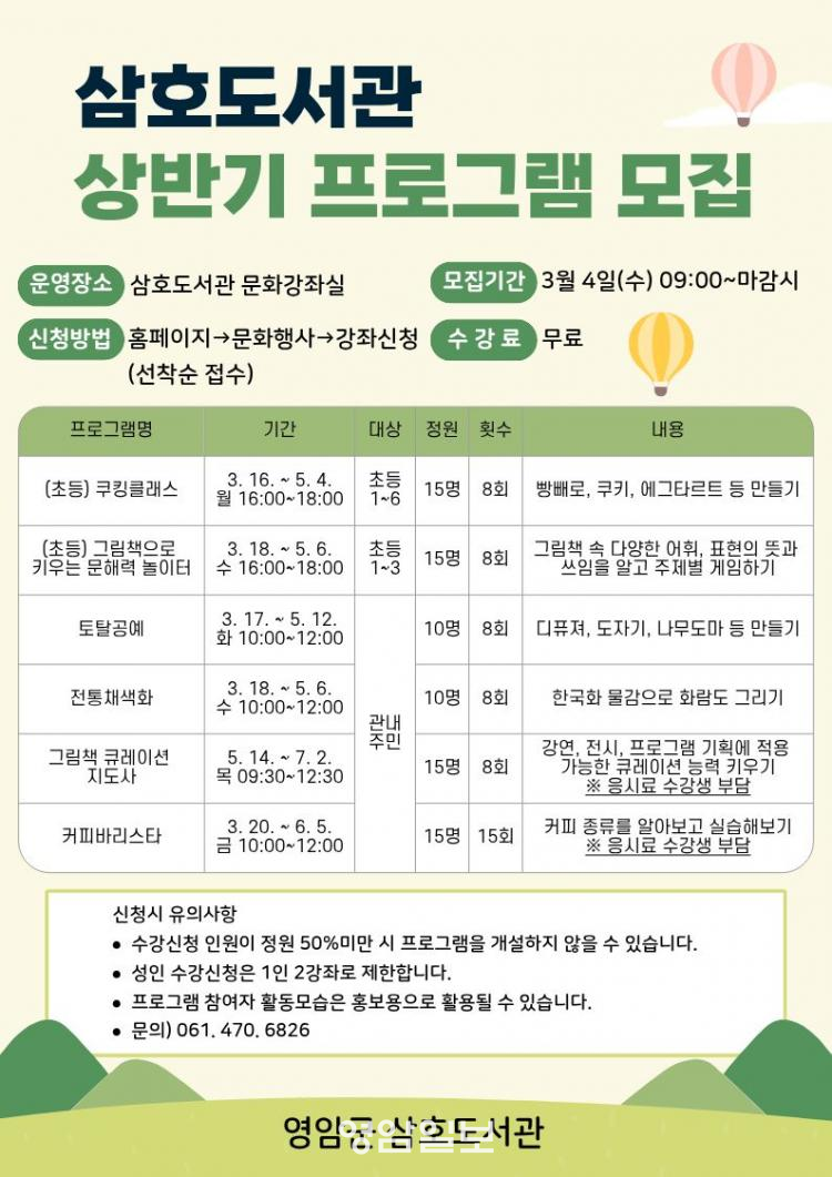 °¢ ÇÁ·Î±×·¥ Á¢¼ö ÀÏÁ¤°ú ¼¼ºÎ ¿î¿µ ³»¿ëÀº µµ¼°ü ȨÆäÀÌÁö¿¡¼ º¼ ¼ö ÀÖ°í, ÀÚ¼¼ÇÑ ¾È³»´Â »ïÈ£µµ¼°ü(470-6826, 6831)¿¡¼ ÇÑ´Ù.