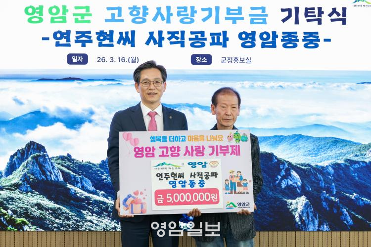¿¬ÁÖÇö¾¾ »çÁ÷°øÆÄ ¿µ¾Ï Á¾ÁßÀÌ 15ÀÏ ¿µ¾Ï±ºÃ»À» ã¾Æ °íÇâ»ç¶û±âºÎ±Ý 500¸¸¿øÀ» Àü´ÞÇß´Ù.