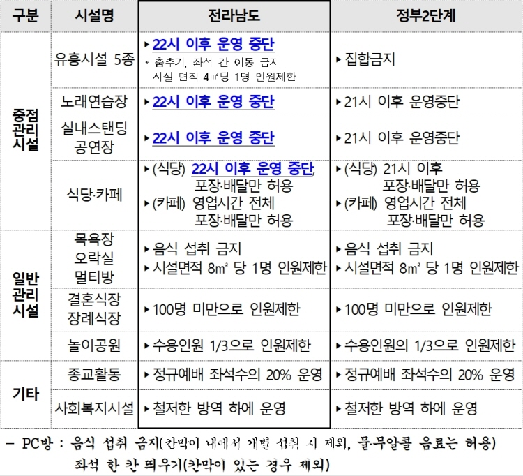 ÀÌ¿¡ µû¶ó Àü³²µµ´Â À¯ÈïÁÖÁ¡¡¤´Ü¶õÁÖÁ¡¡¤°¨¼ºÁÖÁ¡¡¤ÇåÆÃÆ÷Â÷¡¤ÄݶóÅØ µî À¯Èï½Ã¼³ 5Á¾¿¡ ´ëÇØ ¿ÀÈÄ 10½Ã ÀÌÈÄ ¿î¿µÀ» Áß´ÜÇϵµ·Ï Çß´Ù.