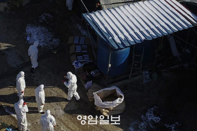 ¿©±â¿¡ ÃÖ±Ù ÀÇ½É ½Å°í°¡ µé¾î¿Â ¹«¾ÈÀÇ »ê¶õ°è ³óÀå¿¡¼ °íº´¿ø¼º Á¶·ùÀÎÇ÷翣ÀÚ(H5N8)°¡ È®Àεʿ¡ µû¶ó Áß¾Ó»ç°í¼ö½Àº»ºÎ´Â ¹ß»ýÁöÀÇ ¹Ý°æ 3km ³» ³óÀå¿¡¼ »çÀ°ÇÏ´Â °¡±ÝÀ» ¿¹¹æÀû »ìóºÐÇß´Ù.