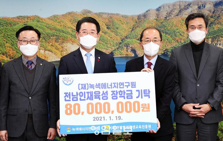 ³ì»ö¿¡³ÊÁö¿¬±¸¿øÀº Áö³ 2018³âºÎÅÍ ¹ßÀü¼Ò ¼öÀͱÝÀÇ ÀϺθ¦ Àü¶ó³²µµ ÀÎÀçÀ°¼º ÀåÇбÝÀ¸·Î Á¦°øÇØ¿ÔÀ¸¸ç, À̹ø ÀåÇбÝÀ» Æ÷ÇÔ ±×µ¿¾È 1¾ï 5õ 500¸¸ ¿øÀ» ±âŹÇß´Ù.