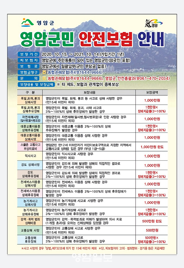 ±º¿¡ µû¸£¸é 2018³âºÎÅÍ ¿î¿µ ÁßÀÎ ±º¹Î¾ÈÀüº¸ÇèÀÇ º¸Àå Ç׸ñÀº ´ëÁß±³ÅëÀÌ¿ëÁß»óÇØ, ±³Åë»ç°í»óÇØ, ½ºÄðÁ¸¾î¸°À̱³Åë»ç°í, ³ó±â°è»ç°í, °·Â¡¤Æø·Â¹üÁË»óÇØ, ÀÚ¿¬ÀçÇØ»ç¸Á, ÈÀçÆø¹ß ¹× ºØ±«»ç°í»óÇØ µî ±âÁ¸ 14Á¾¿¡¼ ¿ÃÇØ Àü¼¼¹ö½ºÀÌ¿ëÁß»óÇØ, °µµ»óÇØ µîÀ» Ãß°¡ÇØ ÃÑ 16Á¾À¸·Î È®´ë½ÃÇà ÁßÀ̸ç, »ç¸Á ¶Ç´Â ºÎ»ó µî ´ãº¸³»¿ë¿¡ µû¶ó ÃÖ´ë 1,000¸¸¿ø±îÁö º¸»óÇýÅÃÀ» ¹ÞÀ» ¼ö ÀÖ´Ù.