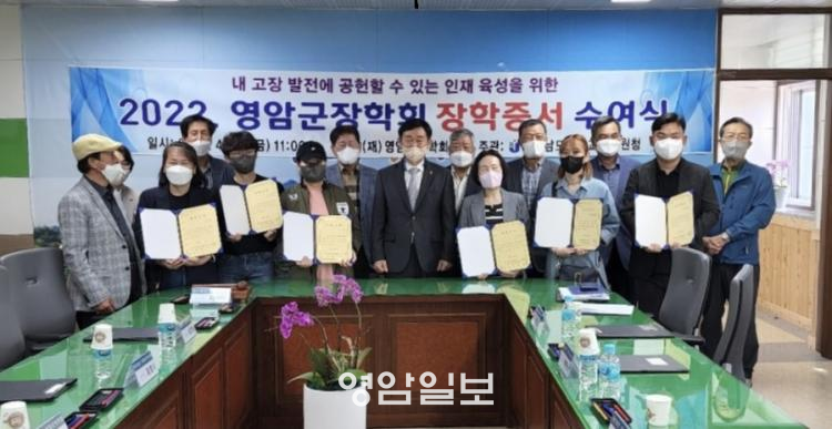 ¿µ¾Ï±ºÀåÇÐȸ ÀÌ»çÀå(¿µ¾Ï±³À°Áö¿øÃ» ±³À°Àå ÃÖ±¤Ç¥)Àº 4¿ù 22ÀÏ Ã»»ç ¼ÒȸÀǽǿ¡¼ ¿µ¾Ï °ü³» °íµîÇб³ Á¹¾÷»ý Áß ´ëÇÐÀÔÇнÅÀÔ»ý 6¸í¿¡°Ô ÀåÇÐÁõ¼¿Í ÀåÇбÝÀ» Àü´ÞÇß´Ù.