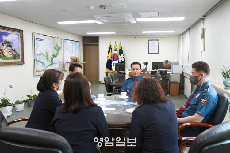 ¿µ¾Ï°æÂû¼(¼Àå ¼Å±Ô)´Â, 26ÀÏ °æÂû¼Àå½Ç¿¡¼ ¿µ¾Ï°æÂû¼ ³ì»ö¾î¸Ó´Ïȸ ¿¬ÇÕȸ À§Ã˽ÄÀ» °®°í °£´ãȸ¸¦ ½Ç½ÃÇß´Ù.