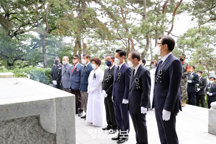 ³ª¶ó¸¦ À§ÇØ Èñ»ý¡¤°øÇåÇϽмø±¹¼±¿°ú È£±¹¿µ·ÉÀ» ±â¸®´Â Ãß³ä½Ä¿¡ ¸ðµç±º¹ÎÀÌ ÇÔ²²ÇÒ ¼ö ÀÖµµ·Ï ´çÀÏ 10½Ã Á¤°¢¿¡ ¹¬³ä »çÀÌ·»À» ¿ï¸®´Â µî ¾Ö±¹Á¤½ÅÀ» °íÃëÇÏ°í ±¹°¡¸¦ À§ÇØ Èñ»ýÇÑ ºÐµéÀ» ±â¾ïÇÏ´Â ¶æ±íÀº ÇöÃæÀÏÀÌ µÇ¾ú´Ù.