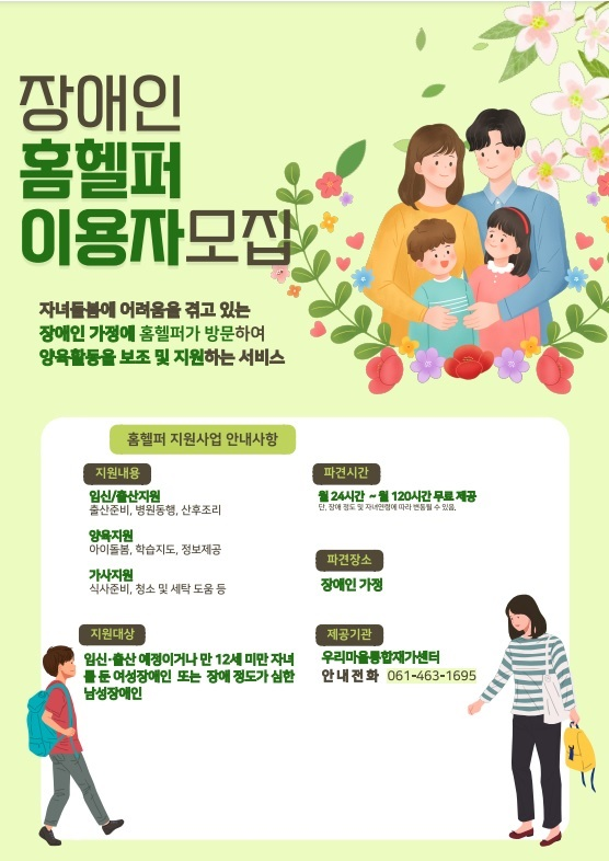 ȨÇïÆÛ¼ºñ½º »ç¾÷Àº Àå¾ÖÀÎÀÇ Áֹεî·ÏÁÖ¼ÒÁö À¾¡¤¸é»ç¹«¼Ò¿¡¼ ¼ö½Ã·Î ½Åû °¡´ÉÇϸç ÀÚ³à ¿¬·É ¹× Àå¾Ö Á¤µµ µî Á¶°Ç¿¡ ÀûÇÕÇÒ °æ¿ì ½Å¼ÓÈ÷ ¼ºñ½º¸¦ Á¦°øÇÏ¿© ´ç»çÀÚÀÇ ¸¸Á·µµ¸¦ ³ôÀÏ °èȹÀÌ´Ù.
