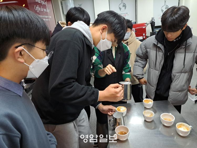 ¸ñÆ÷ ±¹Á¦ Á÷¾÷ Çб³¿¡ ¹æ¹®ÇÑ ÇлýµéÀº ¹Ù¸®½ºÅ¸ Àü¹®Àΰú ÇÔ²² Ä¿ÇÇ¿Í ±× ¹®È¿¡ ´ëÇØ ÀÚ¼¼È÷ ¹è¿ì´Â ½Ã°£À» °¡Á³´Ù. ¶ÇÇÑ Á÷Á¢ ¿øµÎ¸¦ ÃßÃâÇÏ°í ¶ó¶¼ ¾ÆÆ®, īǪġ³ë ¸¸µé±â µîÀ» üÇèÇÏ¸ç ´Ù¾çÇÑ ±â¼úÀ» ¹è¿ì´Â ½Ã°£À» °¡Á³´Ù.