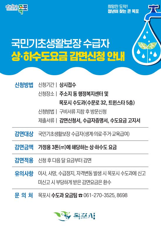 ÇÑÆí ½Ã´Â ¸ñÆ÷½Ã¿¡ °ÅÁÖÇÏ´Â ´ÙÀÚ³à(19¼¼ ÀÌÇÏ ÀÚ³à 3¸í ÀÌ»ó Áֹεî·ÏÀ» µÎ°í °ÅÁÖÇÏ´Â ¼¼´ë) °¡Á¤ÀÌ »ó¡¤Çϼöµµ¿ä±Ý °¨¸éÀ» ½ÅûÇÑ °æ¿ì °¡Á¤¿ë¿¡ ÇÑÇØ »ó¡¤Çϼöµµ¿ä±Ý »ç¿ë·®ÀÇ 15%À» °¨¸éÇϰí ÀÖ´Ù. ½ÅûÀº ¸ñÆ÷½Ã ¼öµµ°ú¸¦ ¹æ¹®Çϰųª ¿ìÆíÀ¸·Î ÇÏ¸é µÈ´Ù.