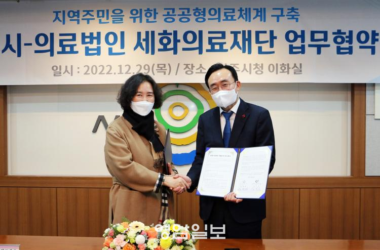 Àü¶ó³²µµ ³ªÁÖ½Ã(½ÃÀå À±º´ÅÂ)´Â 29ÀÏ ½Ãû»ç ÀÌȽǿ¡¼ ÀÇ·á¹ýÀÎ ¼¼ÈÀÇ·áÀç´Ü(ÀÌ»çÀå ±è¹Ì¼ø)°ú ¡®°ø°øÇü ÀÇ·áü°è ±¸ÃàÀ» À§ÇÑ ¾÷¹«Çù¾à¡¯À» ü°áÇß´Ù°í ¹àÇû´Ù.