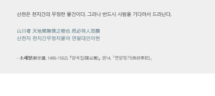 ³Á¤°ú Àûº®Àº ±× ÀÚüÀÇ °æ°üÀÌ »©¾î³ª°í ¾Æ¸§´Ù¿ö¼ À̸§³ °ÍÀÌ ¾Æ´Ï¶ó, ¿ÕÈñÁö¿Í ¼Ò½ÄÀ̶ó´Â ¸íÀΰú µÎ ÆíÀÇ ¸íÀÛÀ» ÅëÇØ õÇÏ¿¡ ¸í¼ºÀ» µå·¯³»¾ú´Ù. ÀÌ·± ¸¸³²ÀÌ ¾ø¾ú´Ù¸é, µÎ °÷Àº ±Ãº®ÇÑ ½Ã°ñÀÇ ±×Àú ±×·± ¹°°¡¿¡ ºÒ°úÇßÀ» °ÍÀÌ´Ù. °á±¹ »ç¹°Àº ½º½º·Î ±ÍÇØÁö´Â °ÍÀÌ ¾Æ´Ï¶ó ¡®»ç¶÷¡¯À» ÅëÇØ¼¸¸ ±ÍÇØÁö±â ¶§¹®ÀÌ´Ù.