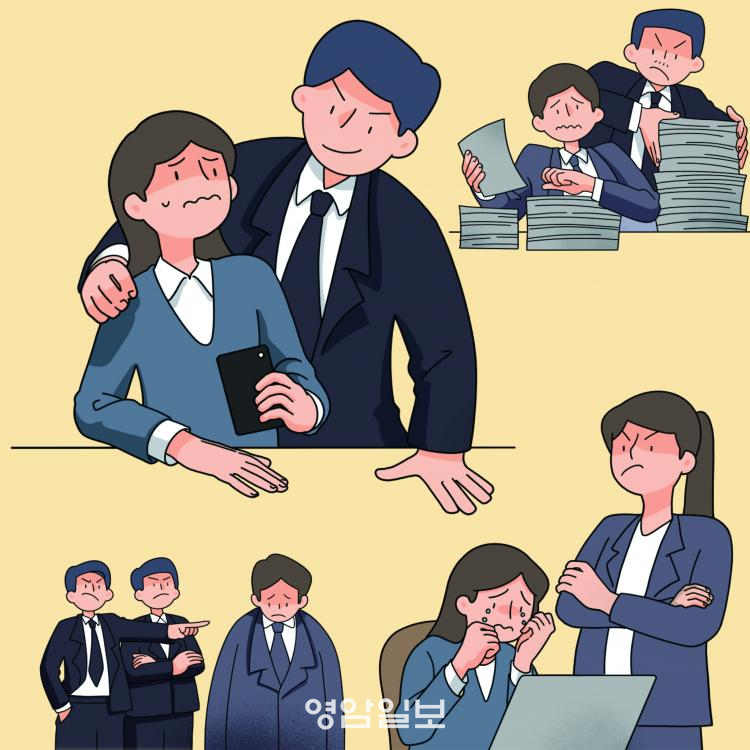 ÀÌ Áß¿¡´Â Á÷Àå ³» ±«·ÓÈû°ú ¼ºÈñ·Õ »ç·Êµµ 5°Ç Àû¹ßµÆ´Ù. ¸Ó¸®¸¦ ¾²´Ùµë°Å³ª ¼ÕÀ» ¸¸Áö°í, º¼À» ²¿Áý¾úÀ¸¸ç, ȸ½Ä Àå¼Ò¿¡¼ µÚ¿¡¼ ²¸¾È´Â µî ½Åü Á¢ÃËÀÌ ÀÖ¾ú´Ù. ¶Ç ¡°¹«½¼ »ý°¢À» Çϱ淡 ¸Ó¸®°¡ ¸¹ÀÌ ±æ¾ú³Ä¡±´Â µî ¼ºÀû ¼öÄ¡½É À¯¹ß ¹ß¾ðµµ ÀÖ¾ú´Ù.