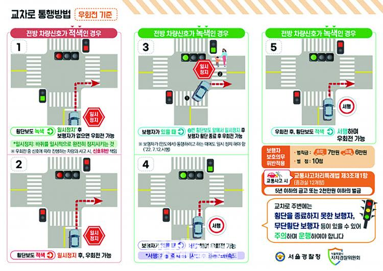 Áö³ÇØ 7¿ùºÎÅÍ µµ·Î±³Åë¹ýÀÌ °³Á¤µÇ¸é¼ ¿îÀüÀÚ´Â ±³Â÷·Î ¿ìȸÀü ½Ã ½ÅÈ£ ¿©ºÎ¿¡ °ü°è¾øÀÌ º¸ÇàÀÚ°¡ ÀÖÀ» °æ¿ì Ⱦ´Üº¸µµ Á÷Àü(Á¤Áö¼±)¿¡ ÀϽÃÁ¤Áö ÇØ¾ßÇÑ´Ù.