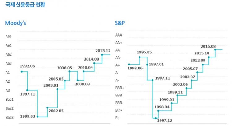Áö³ÇØ 5¿ù ÀÌ¹Ì ±Û·Î¹ú 3´ë ½Å¿ëÆò°¡»çÀÎ S&P´Â Çѱ¹Àü·Â°ø»çÀÇ ´ë±Ô¸ð ÀûÀÚ¸¦ ÀÌÀ¯·Î µ¶Àڽſëµî±ÞÀ» ¡®BBB-¡¯¿¡¼ Åõ±âµî±ÞÀÎ ¡®BB+¡¯·Î °µîÇß´Ù. ÀÌ´Â ¿ÜȯÀ§±â·Î ±¹Á¦Åëȱâ±Ý(IMF) Áö¿øÀ» ¹Þ¾Ò´ø 1997³â°ú À¯»çÇÑ ¼öÁØÀÌ´Ù. ´ç½Ã Çѱ¹Àü·Â°ø»ç ±¹Á¦½Å¿ëµî±ÞÀ» ¹«µð½º´Â Baa3(1999³â3¿ù)·Î °µîÇßÀ¸¸ç, S&P´Â B+(1999³â12¿ù)·Î Æò°¡Çß´Ù.