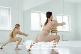 Á¤¸éÀ» ¹Ù¶óº¸°í ¾ç¼ÕÀº Ç㸮 Ãã¿¡ ´ë°Å³ª °¡½¿¾Õ¿¡¼ µÎ¼ÕÀ» ¸ðÀ¸°í ¹ÝµíÇÏ°Ô ¼± ÈÄ, ÇÑÂÊ ´Ù¸®¸¦ ¿·ÂÊ ¹Ù±ùÀ¸·Î »¸À¸¸é¼ ´Ù¸¥ÂÊ ´Ù¸®ÀÇ ¹«¸À» ±¸ºÎ·Á ³»¸³´Ï´Ù. ±× ´ÙÀ½ ¹Ý´ëÂÊ ´Ù¸®¸¦ ´ç°Ü ¹ÝµíÇÏ°Ô ¼± ÀÚ¼¼·Î µ¹¾Æ°©´Ï´Ù. ¸¶Âù°¡Áö·Î ¹Ý´ëÂʵµ µ¿ÀÏÇÏ°Ô µ¿ÀÛÀ» ÇàÇÕ´Ï´Ù