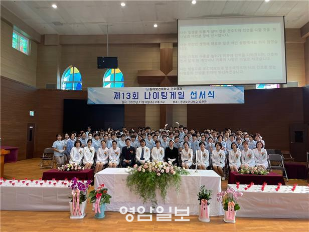 ÀÌ Çà»ç¸¦ ÁغñÇÑ µ¿¾Æº¸°Ç´ëÇб³ °£È£Çаú ±è±Ý³² ÇаúÀåÀº ¡°À̹ø ³ªÀÌÆÃ°ÔÀÏ ¼±¼½ÄÀ» ÅëÇØ ³ªÀÌÆÃ°ÔÀÏÀÇ ¼þ°íÇÑ Á¤½ÅÀ» À̾î¹Þ¾Æ Àΰ£ÀÇ »ý¸í°ú Á¸¾ö¼ºÀ» Áß½ÃÇϸç Àü¹®Àû ¼Ò¸íÀǽÄÀ» °¡Áö°í ¼¶±è°ú ºÀ»ç¸¦ ½ÇõÇÏ´Â °£È£»ç°¡ µÇ±æ ¹Ù¶õ´Ù¡±°í °Ý·ÁÇß´Ù.