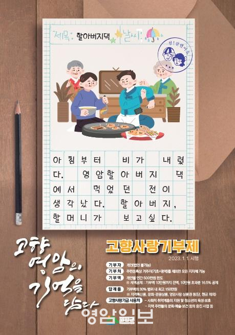 Ãß°¡ ¸ðÁý¿¡ ´ëÇÑ ÀÚ¼¼ÇÑ ³»¿ëÀº ¿µ¾Ï±ºÈ¨ÆäÀÌÁö ¡®¸ðÁý°ø°í¡¯¿¡¼ º¼ ¼ö ÀÖ´Ù. ½Åû°ú ¾È³»´Â ¿µ¾Ï±º ÀÚÄ¡ÇàÁ¤°ú °íÇâ»ç¶ûÆÀ(061-470-2643)¿¡¼ ÇÑ´Ù. ¿µ¾Ï±ºÀº ¡®2023³â ´ä·Êǰ¼±Á¤À§¿øÈ¸¡¯¸¦ ¿°í 100¿© °³ÀÇ »óǰÀ» ¼±Á¤Çß´Ù. ÇöÀç ÀÌ »óǰµéÀº °íÇâ»ç¶û±âºÎÀÚ°¡ ¡®°íÇâ»ç¶ûeÀ½¡¯ ¡®À§±âºê¡¯ ¾Û¿¡¼ ¼±ÅÃÇÏ¸é ´ä·ÊǰÀ¸·Î Á¦°øµÇ°í ÀÖ´Ù.