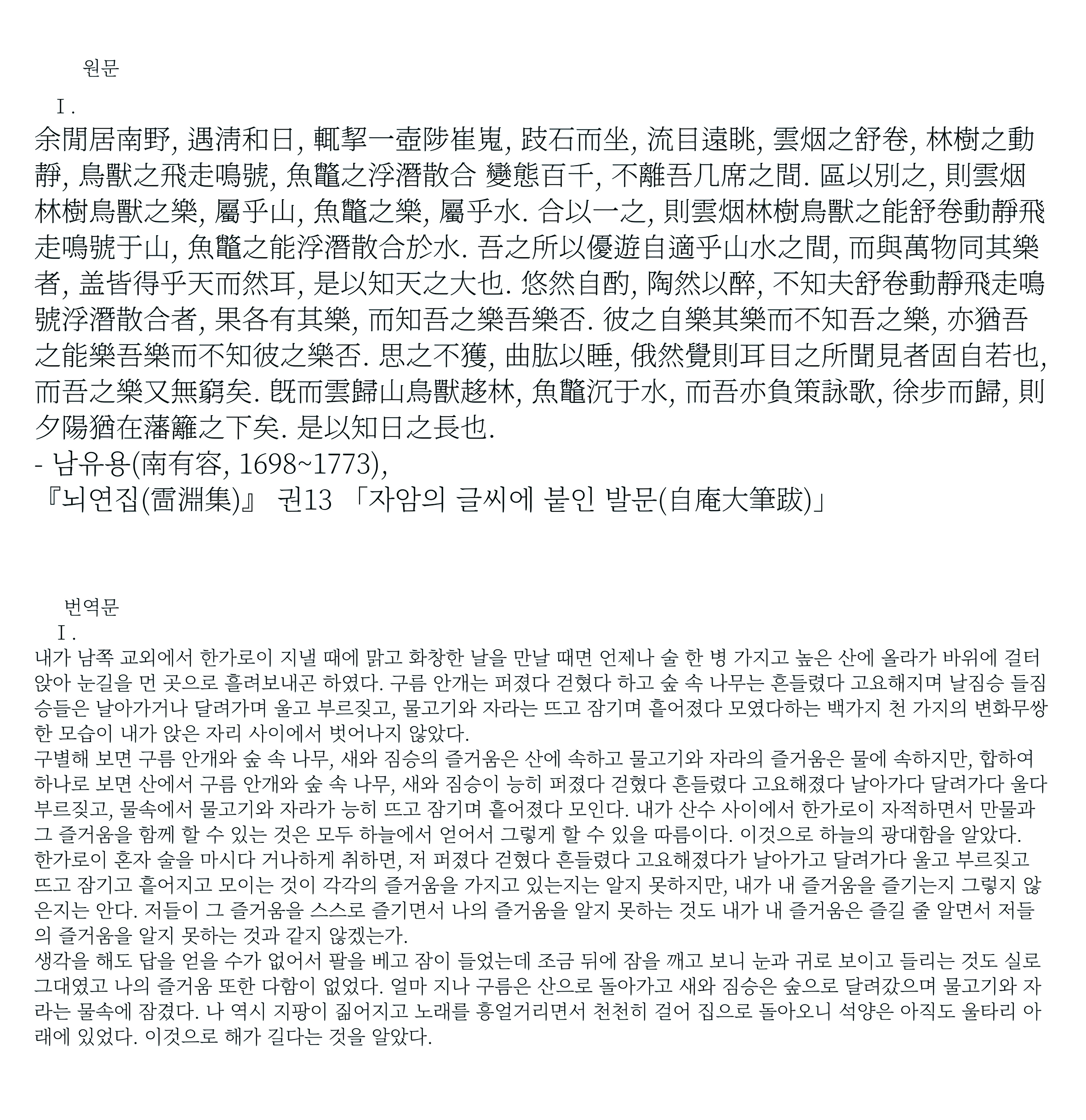 ³²À¯¿ëÀÇ ¡¸ÀÚ¾ÏÀÇ ´ëÇÊ¿¡ ºÙÀÎ ¹ß¹®(í»äÝÓÞù¶Û¢)¡¹µµ ÀÏÁ¾ÀÇ ½£¸Û¿¡ ´ëÇÑ °æÇèÀ» ¾´ ±ÛÀÌ´Ù. ÀÚ¾ÏÀÇ ´ëÇÊÀº 16¼¼±â ¸íÇÊ ±è±¸(ÑÑϽ)ÀÇ ¡°°í¿äÇÔ ¼Ó¿¡ ÇÏ´ÃÀº ±¤´ëÇϰí, ÇѰ¡ÇÑ °¡¿îµ¥ ÇØ´Â ±æ´Ù[ð¡×êô¸ÓÞ ùÙñéìííþ]¡±¶ó´Â ±Û¾¾ÀÌ´Ù.