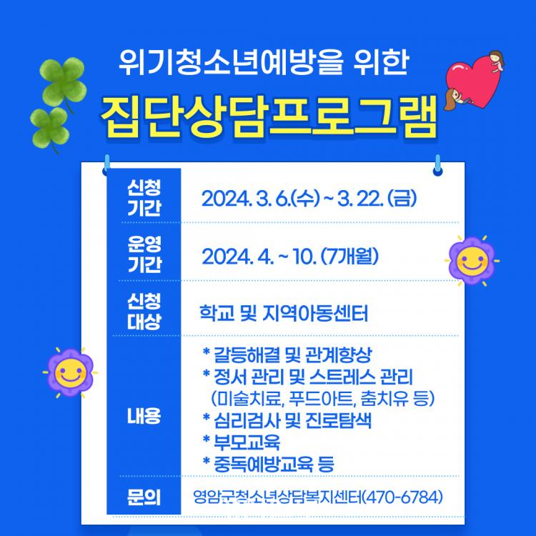 ½Åû±â°£Àº ÀÌ´Þ 6~22ÀÏÀ̰í, ÇÁ·Î±×·¥¿¡ ´ëÇÑ ÀÚ¼¼ÇÑ ¾È³»´Â û¼Ò³â»ó´ãº¹Áö¼¾ÅÍ(061-470-6784)¿¡¼ ÇÑ´Ù.