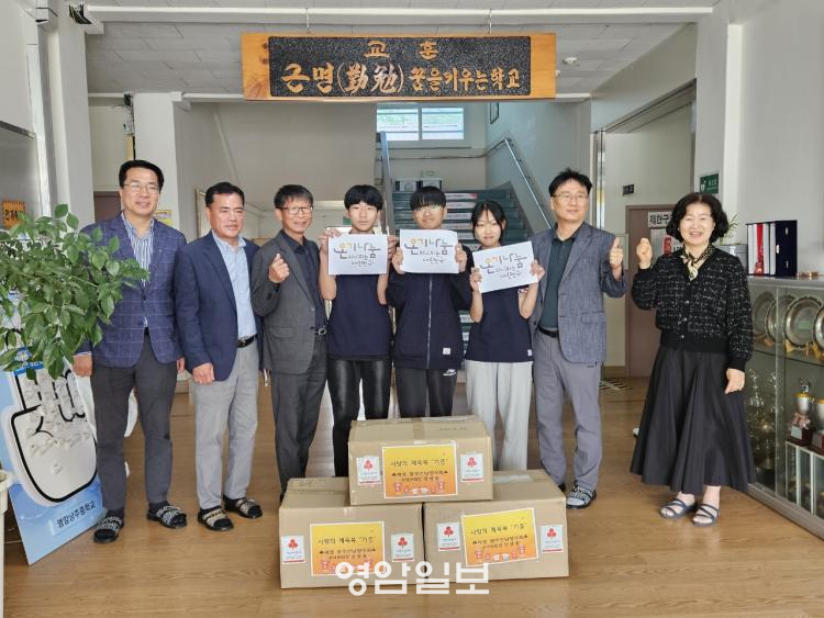 ¾ç±¤¿ë Àç°æ ±¤ÁÖÀü³²½Ãµµ¹Îȸ ¼ö¼®ºÎȸÀåÀÌ ÇлêÃÊ, µ¶ÃµÃÊ, ³¶ÁÖÁßÇб³ Àü±³»ý 155¸í¿¡°Ô °¢ 2¹ú¾¿ 9¹é¸¸ ¿ø »ó´çÀÇ Ã¼À°º¹À» Àü´ÞÇß´Ù.