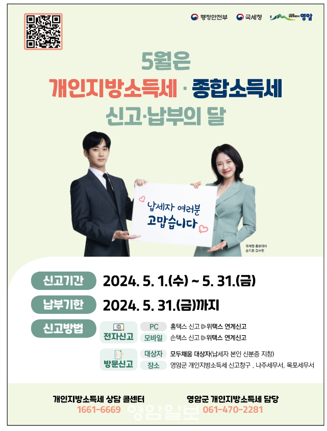 ¿µ¾Ï±º °ü°èÀÚ´Â ¡°±¹¼¼Ã» ȨÅýº¿¡ Á¢¼ÓÇØ °£ÆíÇÏ°í Æí¸®ÇÏ°Ô ¿Â¶óÀÎ ÀüÀÚ ½Å°í¡¤³³ºÎÇØ ÁÖ±æ ¹Ù¶õ´Ù. 5¿ù ¸»±îÁö ½Å°íÇØ¼ °¡»ê¼¼ ºÎ´ã µî Àç»ê»óÀÇ ºÒÀÌÀÍÀ» ¹ÞÁö ¾Êµµ·Ï ÇØ´Þ¶ó¡±°í ¹àÇû´Ù.