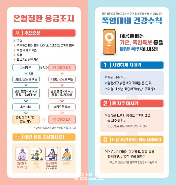 ¿µ¾Ï±º °ü°èÀÚ´Â ¡°¿©¸§Ã¶ ¿Â¿Áúȯ ¿¹¹æÀ» À§Çؼ °¥ÁõÀ» ´À³¢±â Àü¿¡ ¹°À» ÀÚÁÖ ¸¶½Ã°í, ´õ¿î ½Ã°£´ë¿¡´Â ¾ß¿ÜÀÛ¾÷ ¿îµ¿ µîÀ» ÀÚÁ¦ÇÏ°í ½Ã¿øÇÑ °÷¿¡ ¸Ó¹°·¯¾ß ÇÑ´Ù. ƯÈ÷, ³ëÀΡ¤¾î¸°ÀÌ¡¤¸¸¼ºÁúȯÀÚ µî Ãë¾à°èÃþÀº °¢º°ÇÑ ÁÖÀǸ¦ ¹Ù¶õ´Ù¡±°í °Á¶Çß´Ù.