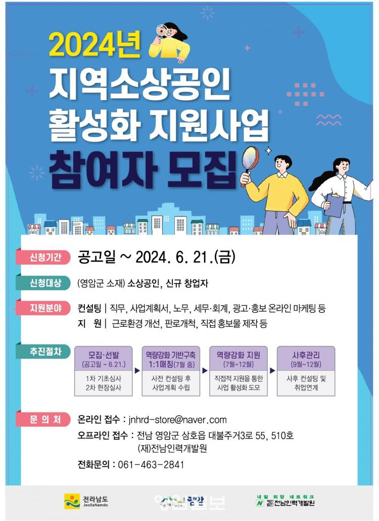 »ç¾÷ ¾È³»´Â Àü³²Àη°³¹ß¿ø(061-463-2841)¿¡¼ Çϰí, Á¢¼ö´Â ¹æ¹®À̳ª À̸ÞÀÏ(jnhrd-store@naver.com)·Î ÇÒ ¼ö ÀÖ´Ù.