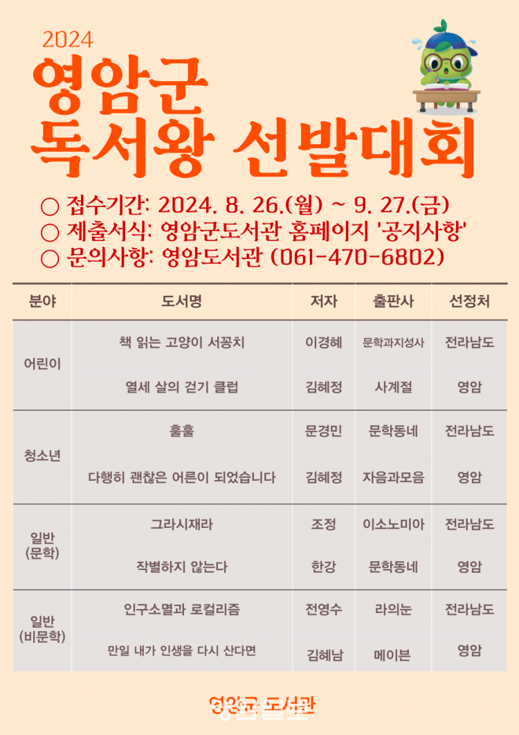 ¿µ¾Ï±º¹Î ´©±¸³ª Âü¿©ÇÒ ¼ö ÀÖ´Â À̹ø ´ëȸ´Â, ¿µ¾Ï±º°ú Àü³²µµ¸³µµ¼°üÀÌ ¼±Á¤ÇÑ ¡®¿ÃÇØÀÇ Ã¥¡¯ 8±Ç Áß 1±ÇÀ» ÀÐ°í µ¶¼°¨»ó¹®À» ÀÛ¼ºÇØ Á¦ÃâÇÏ´Â ¹æ½ÄÀ¸·Î ÁøÇàµÈ´Ù.