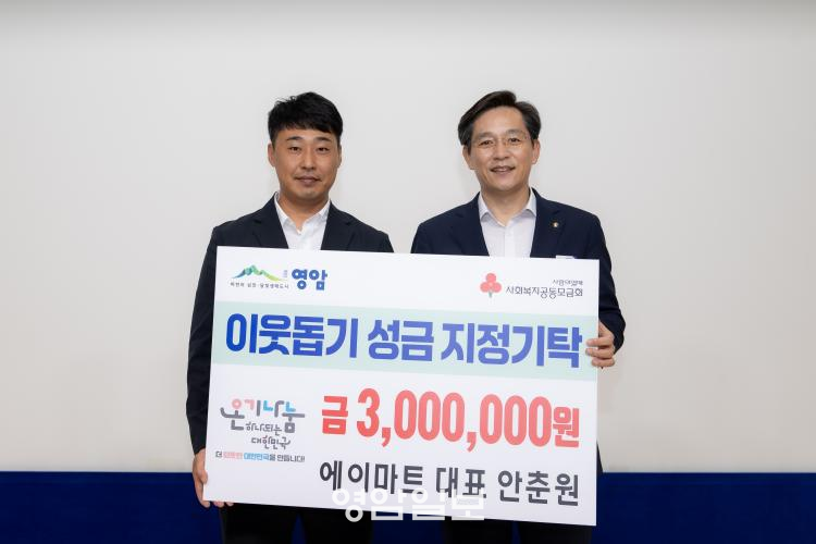 ¾ÈÃá¿ø ¿¡À̸¶Æ® ´ëÇ¥°¡ 2ÀÏ ÀÌ¿ôµ½±â ¼º±Ý 300¸¸¿øÀ» ¿µ¾Ï±º¿¡ ÁöÁ¤ ±âŹÇß´Ù.